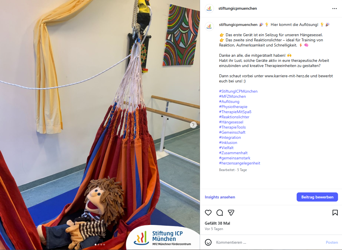 Die Stiftung ICP München begleitet Kinder, Jugendliche und Erwachsene mit Cerebralparese sowie anderen körperlichen und mehrfachen Beeinträchtigungen. Mit Engagement und Empathie setzen wir uns für Inklusion, soziale Teilhabe und ein selbstbestimmtes Leben ein. Werden Sie Teil eines interdisziplinären Teams und entfalten Sie Ihr Potenzial in einem unserer vielfältigen Tätigkeitsfelder!